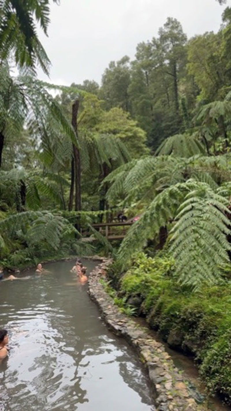 Finalizamos con un baño en las termas de Ferraria, donde el agua caliente natural nos ayuda a relajarnos y asimilar todo lo vivido. Regresamos a nuestra casa para una cena casera, seguida de una actividad de cinefórum, un espacio para compartir ideas.